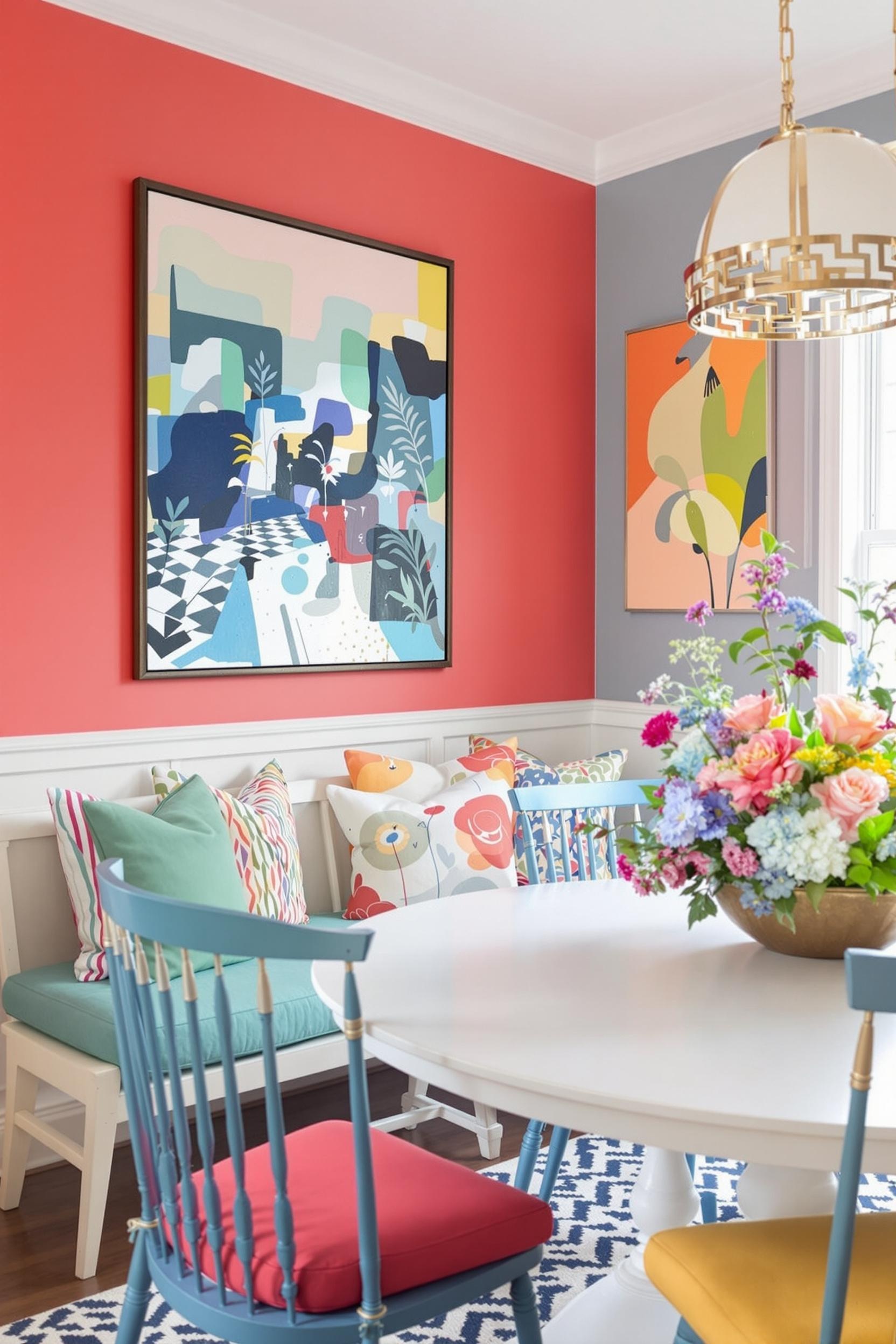 My go-to approach? Clean lines and bold shapes. I often tape off large triangles, arches, and rectangles on a wall and fill them with bold hues—like mustard yellow, terracotta, or dark teal. These shapes feel modern and fresh while guiding the eye through the room. For inspiration, peek into this article on bold colors in minimalist spaces. It includes my step-by-step for geometric painting and color layering.
